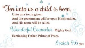 "For to us a child is born, to us a son is given, and the government will be on his shoulders. And he will be called Wonderful Counselor, Mighty God, Everlasting Father, Prince of Peace.” Isaiah 9:6